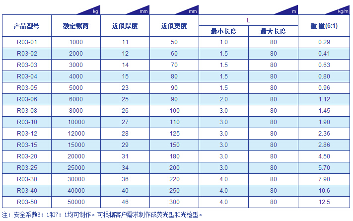 巨力R03型(環眼型)吊裝帶參數表