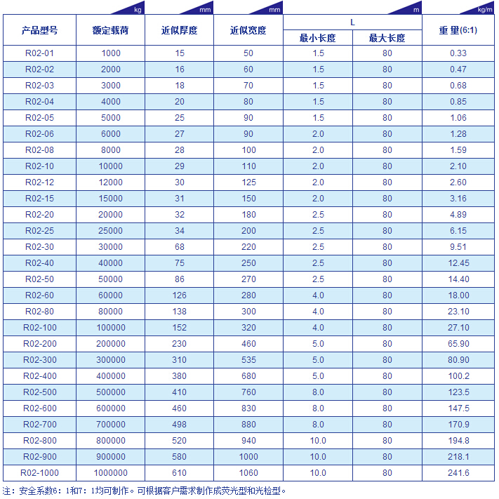 巨力R02型(防護(hù)型)吊裝帶參數(shù)表