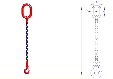 該索具可以作為單肢捆綁索具使用,當單肢捆綁索具使用時只需將吊鉤鉤入鏈條,此時額定載荷將降低20%。